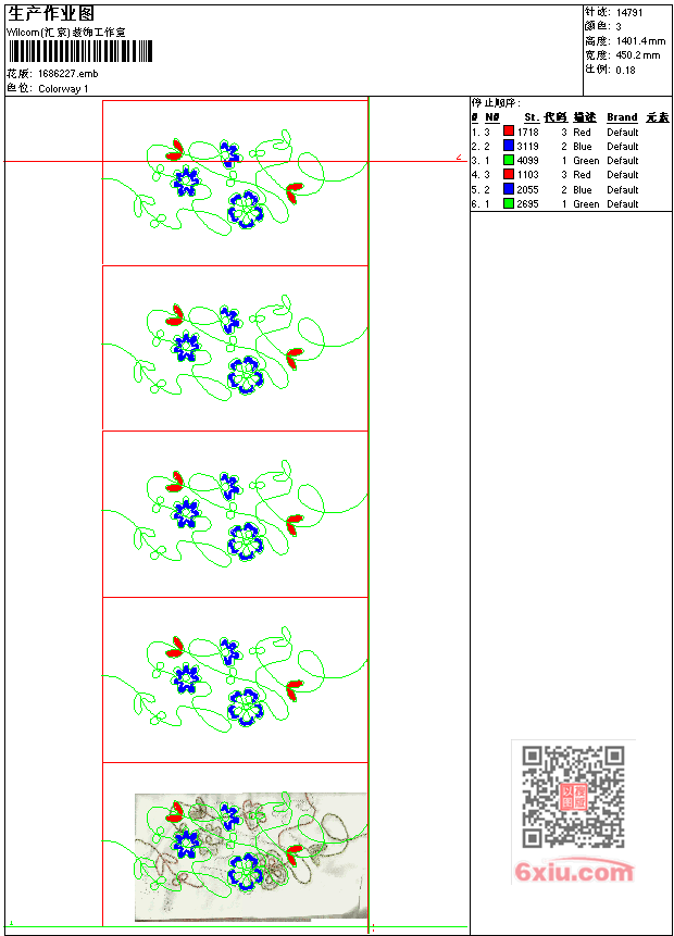 - emb花版参数: 大小:349.50 KB / 尺寸:450*1401[毫米] / 针数:14791针 / 线色:3 / 格式:emb / 版本:7
