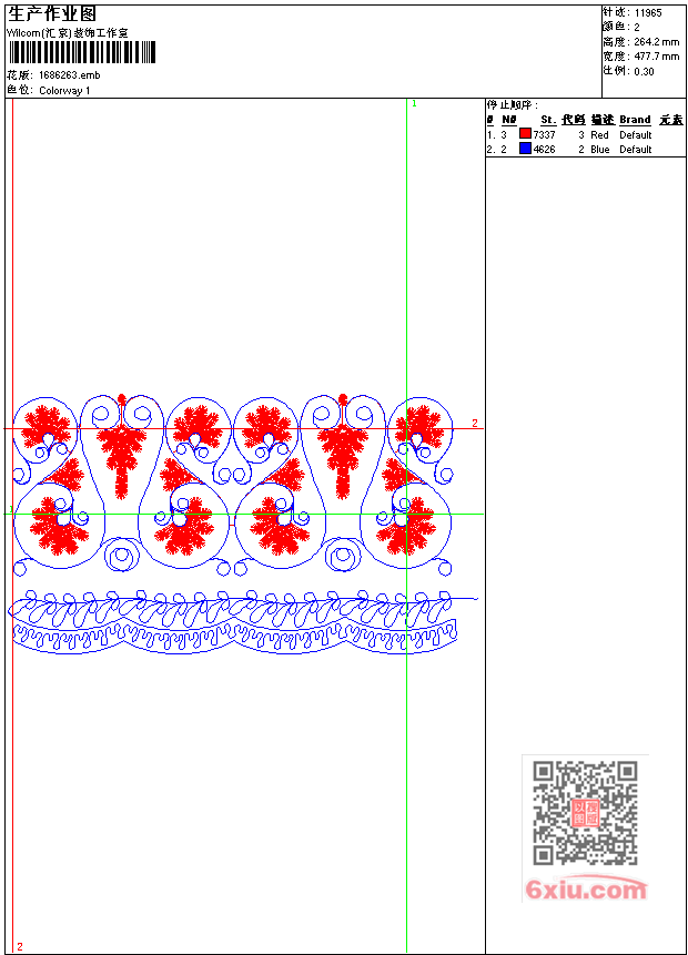 - emb花版参数: 大小:58.50 KB / 尺寸:478*264[毫米] / 针数:11965针 / 线色:2 / 格式:emb / 版本:7