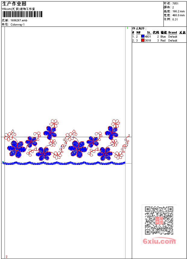 - emb花版参数: 大小:55.00 KB / 尺寸:468*166[毫米] / 针数:7951针 / 线色:2 / 格式:emb / 版本:7