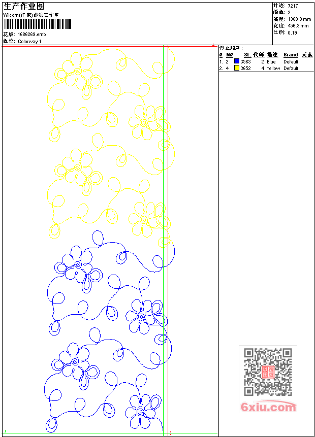 - emb花版参数: 大小:25.00 KB / 尺寸:456*1360[毫米] / 针数:7217针 / 线色:2 / 格式:emb / 版本:7