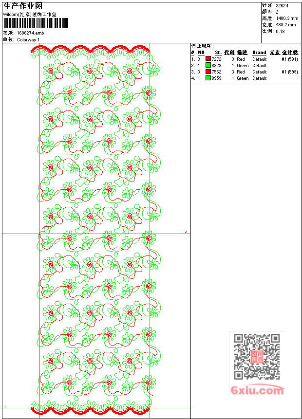 - emb花版参数: 大小:118.00 KB / 尺寸:488*1400[毫米] / 针数:32624针 / 线色:2 / 格式:emb / 版本:7