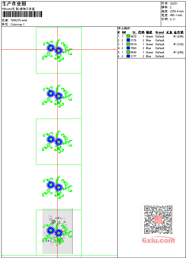 - emb花版参数: 大小:255.50 KB / 尺寸:450*2251[毫米] / 针数:32251针 / 线色:2 / 格式:emb / 版本:7