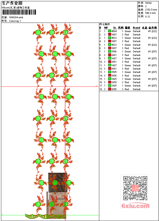 - emb花版参数: 大小:814.50 KB / 尺寸:540*2152[毫米] / 针数:59302针 / 线色:2 / 格式:emb / 版本:7