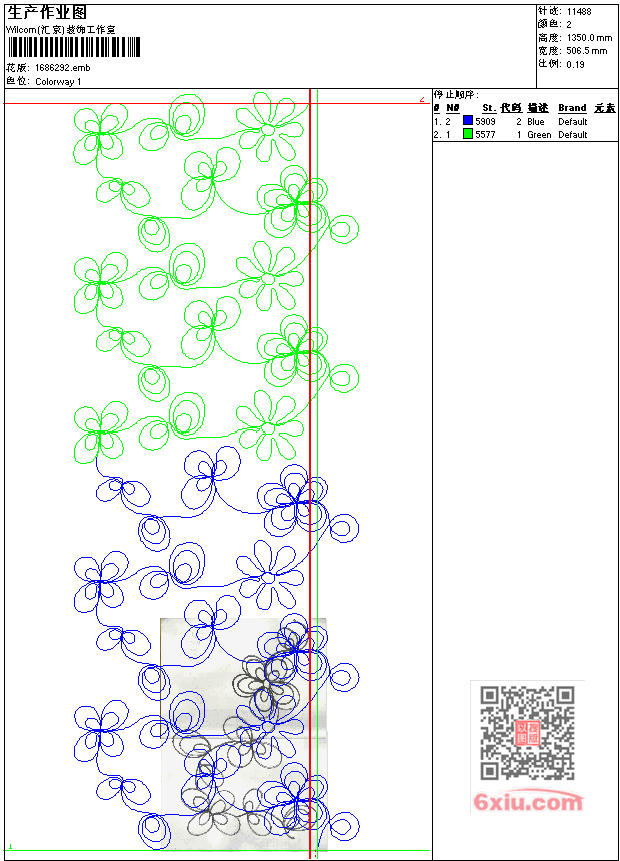 - emb花版参数: 大小:229.00 KB / 尺寸:506*1350[毫米] / 针数:11488针 / 线色:2 / 格式:emb / 版本:7