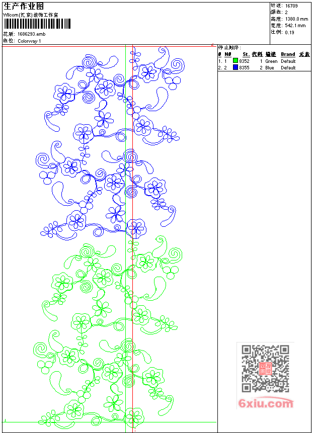 - emb花版参数: 大小:111.50 KB / 尺寸:542*1380[毫米] / 针数:16709针 / 线色:2 / 格式:emb / 版本:7
