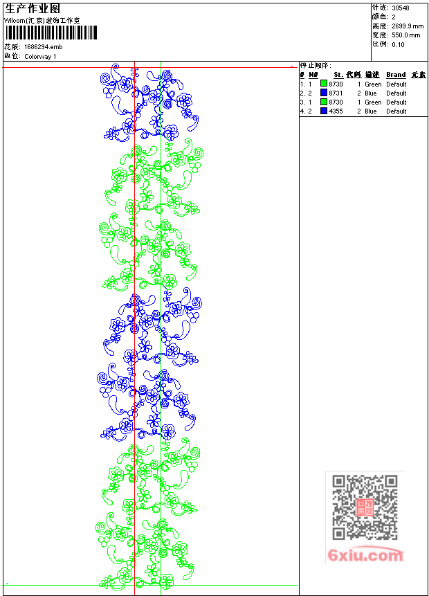 - emb花版参数: 大小:187.00 KB / 尺寸:550*2700[毫米] / 针数:30548针 / 线色:2 / 格式:emb / 版本:7