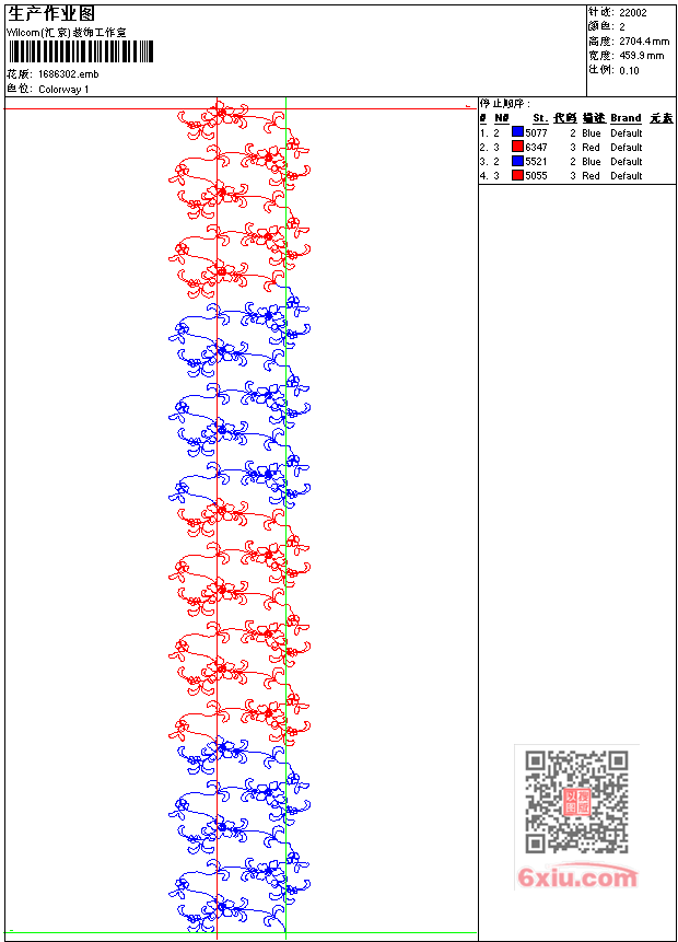 - emb花版参数: 大小:35.50 KB / 尺寸:460*2704[毫米] / 针数:22002针 / 线色:2 / 格式:emb / 版本:7