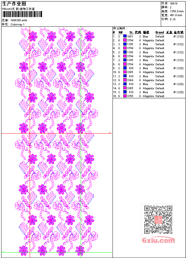 - emb花版参数: 大小:146.50 KB / 尺寸:492*1359[毫米] / 针数:36616针 / 线色:2 / 格式:emb / 版本:7