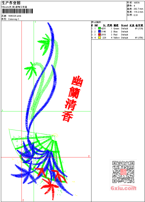 - 版带文件需绣花软件方可打开,可配色打印导出各种格式或直接上机绣。如无绣花软件可下载1:1模拟效果图。