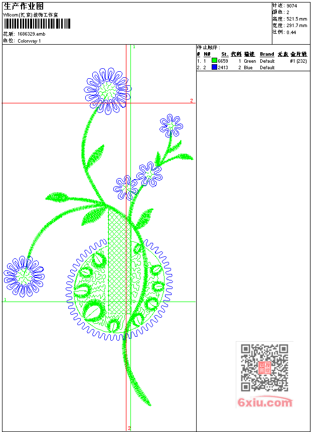 - emb花版参数: 大小:48.00 KB / 尺寸:292*522[毫米] / 针数:9074针 / 线色:2 / 格式:emb / 版本:7