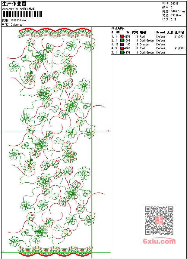 - emb花版参数: 大小:156.00 KB / 尺寸:596*1420[毫米] / 针数:24389针 / 线色:3 / 格式:emb / 版本:7