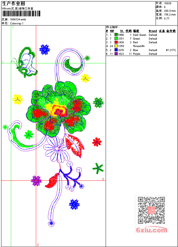 - emb花版参数: 大小:141.00 KB / 尺寸:156*281[毫米] / 针数:16939针 / 线色:6 / 格式:emb / 版本:7
