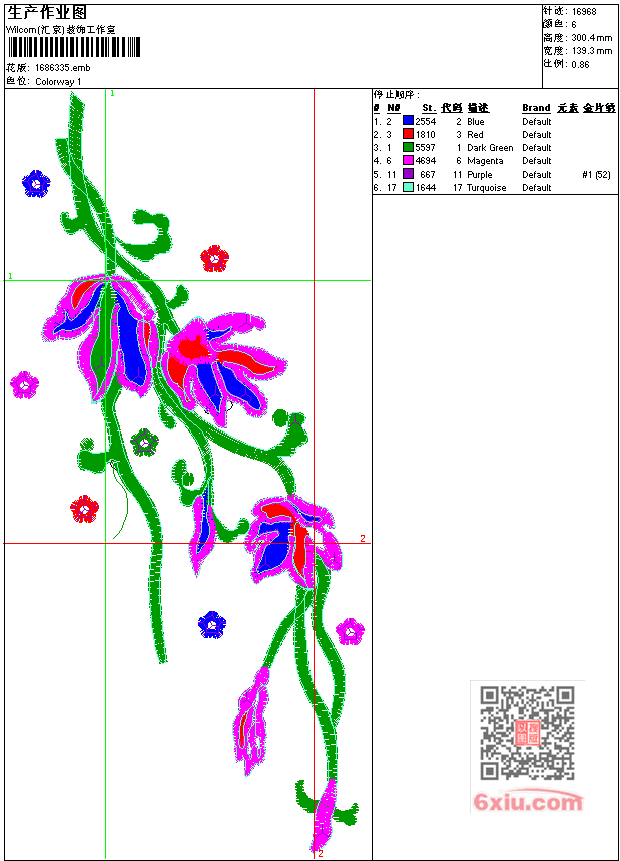 - emb花版参数: 大小:110.50 KB / 尺寸:139*300[毫米] / 针数:16968针 / 线色:6 / 格式:emb / 版本:8
