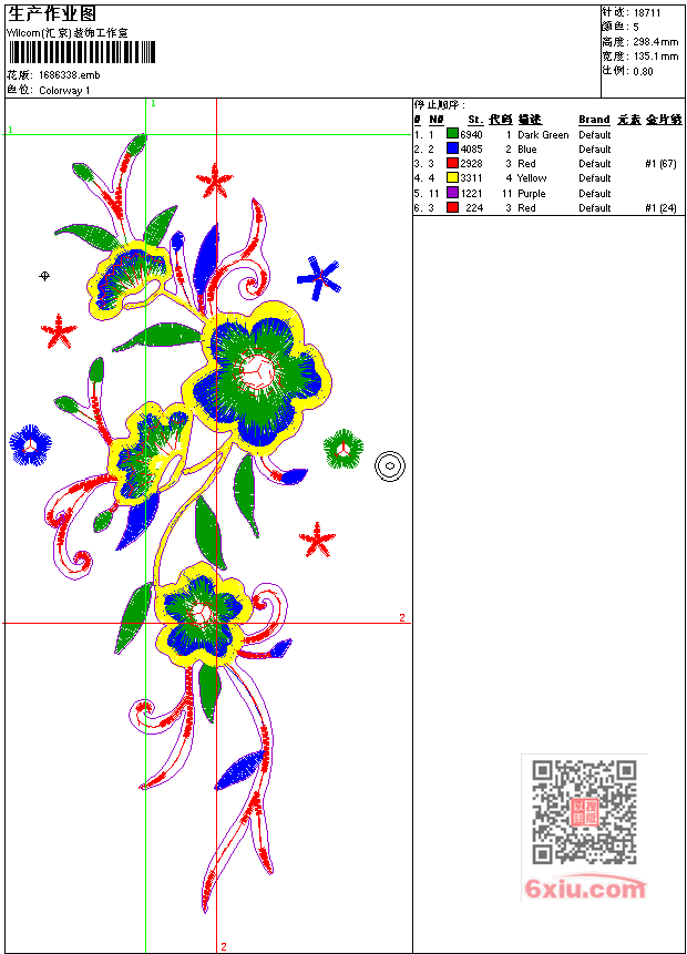 - 版带文件需绣花软件方可打开,可配色打印导出各种格式或直接上机绣。如无绣花软件可下载1:1模拟效果图。