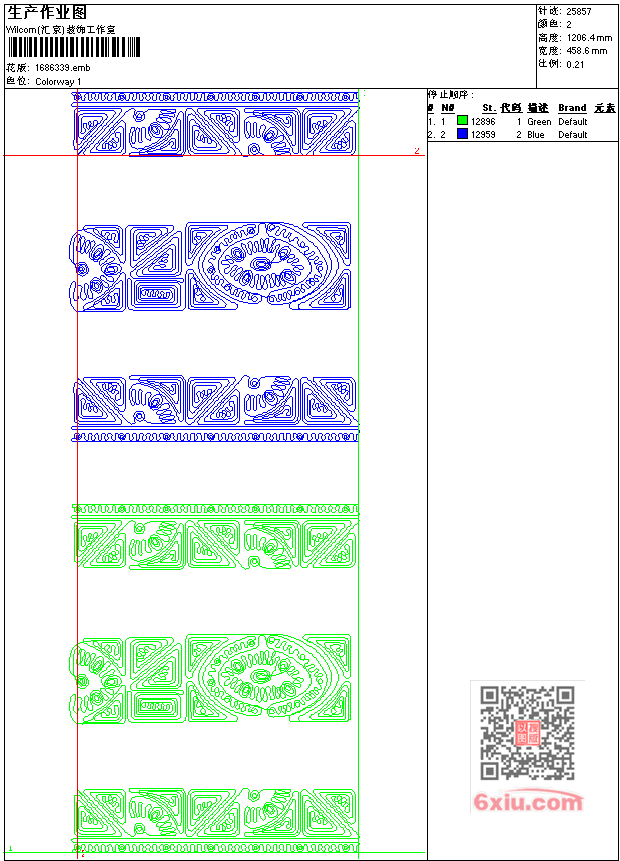 - emb花版参数: 大小:38.50 KB / 尺寸:459*1206[毫米] / 针数:25857针 / 线色:2 / 格式:emb / 版本:7