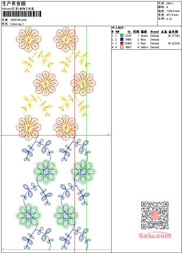 - emb花版参数: 大小:172.50 KB / 尺寸:478*1345[毫米] / 针数:29011针 / 线色:4 / 格式:emb / 版本:7