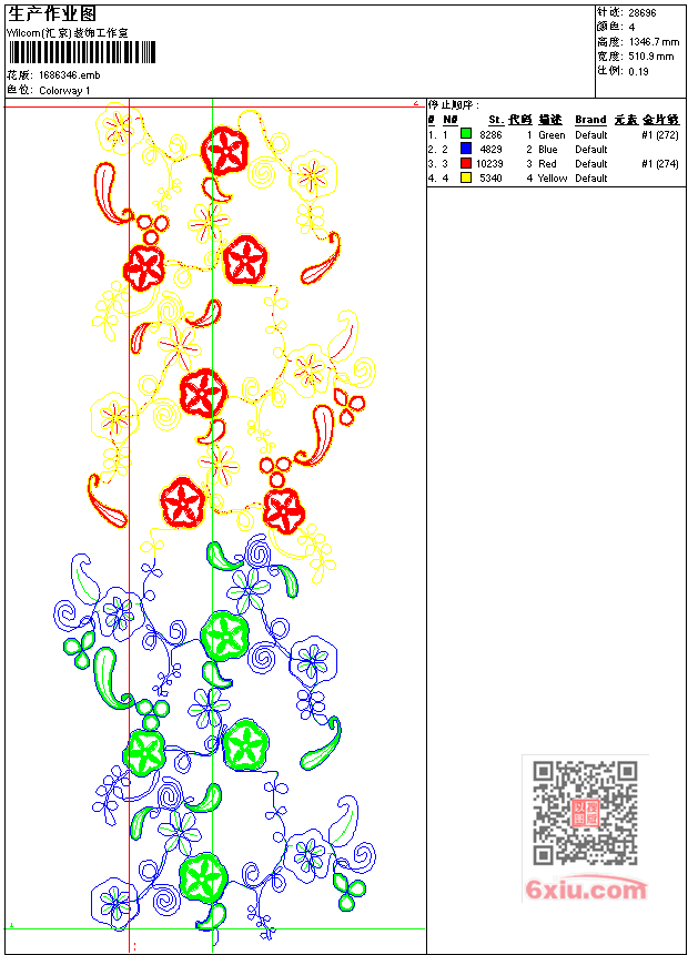 - emb花版参数: 大小:110.00 KB / 尺寸:511*1347[毫米] / 针数:28696针 / 线色:4 / 格式:emb / 版本:7