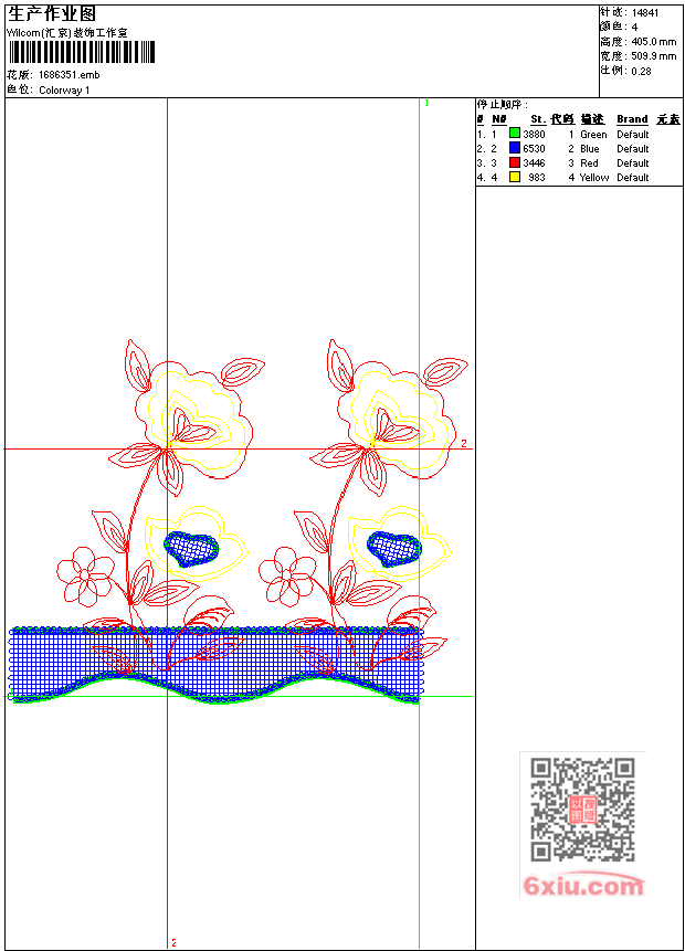 - emb花版参数: 大小:36.50 KB / 尺寸:510*405[毫米] / 针数:14841针 / 线色:4 / 格式:emb / 版本:7