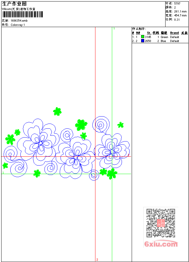 - emb花版参数: 大小:28.50 KB / 尺寸:455*261[毫米] / 针数:5797针 / 线色:2 / 格式:emb / 版本:7