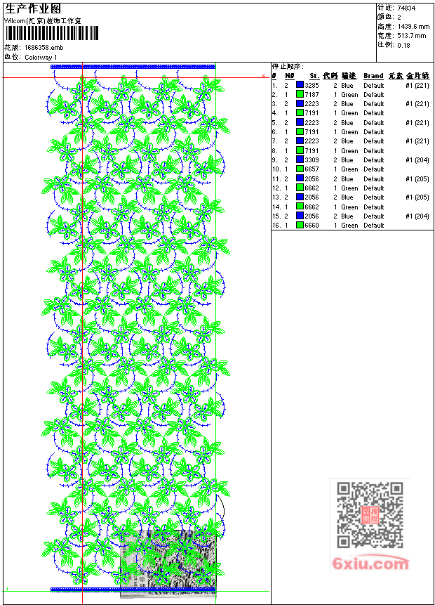 - emb花版参数: 大小:732.50 KB / 尺寸:514*1440[毫米] / 针数:74834针 / 线色:2 / 格式:emb / 版本:7