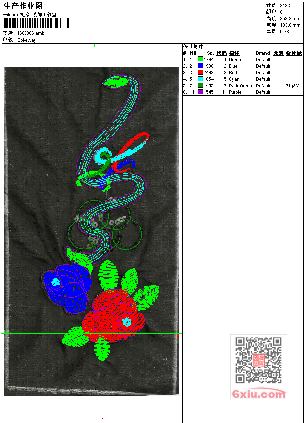 - emb花版参数: 大小:238.00 KB / 尺寸:103*252[毫米] / 针数:8123针 / 线色:6 / 格式:emb / 版本:7