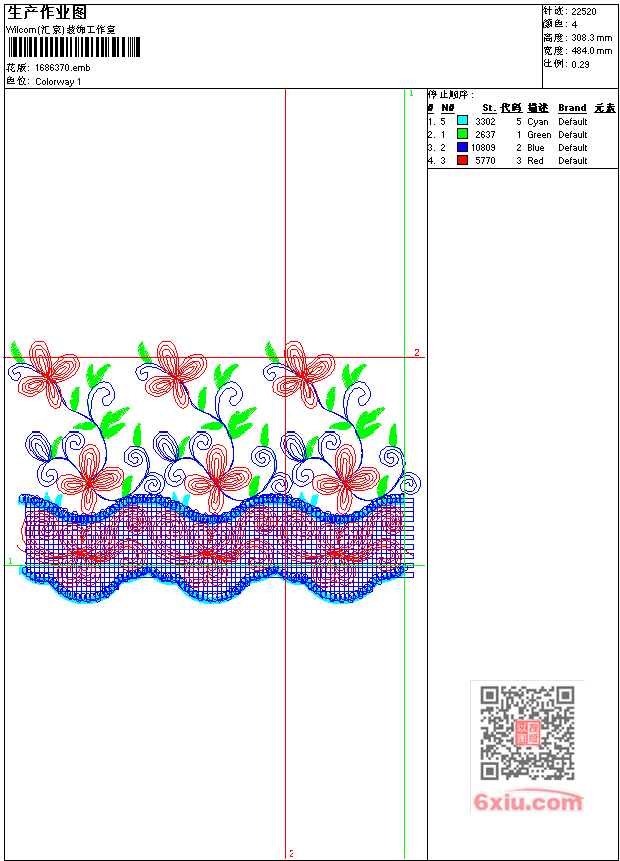 - emb花版参数: 大小:76.50 KB / 尺寸:484*308[毫米] / 针数:22520针 / 线色:4 / 格式:emb / 版本:7