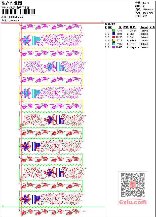 - emb花版参数: 大小:105.00 KB / 尺寸:480*1380[毫米] / 针数:40276针 / 线色:6 / 格式:emb / 版本:7