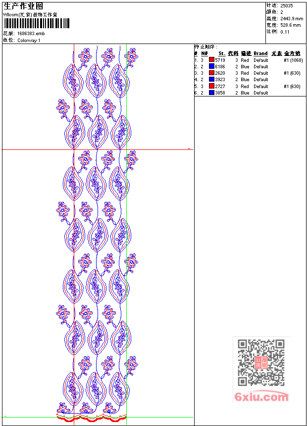 - emb花版参数: 大小:191.00 KB / 尺寸:529*2444[毫米] / 针数:25035针 / 线色:2 / 格式:emb / 版本:7