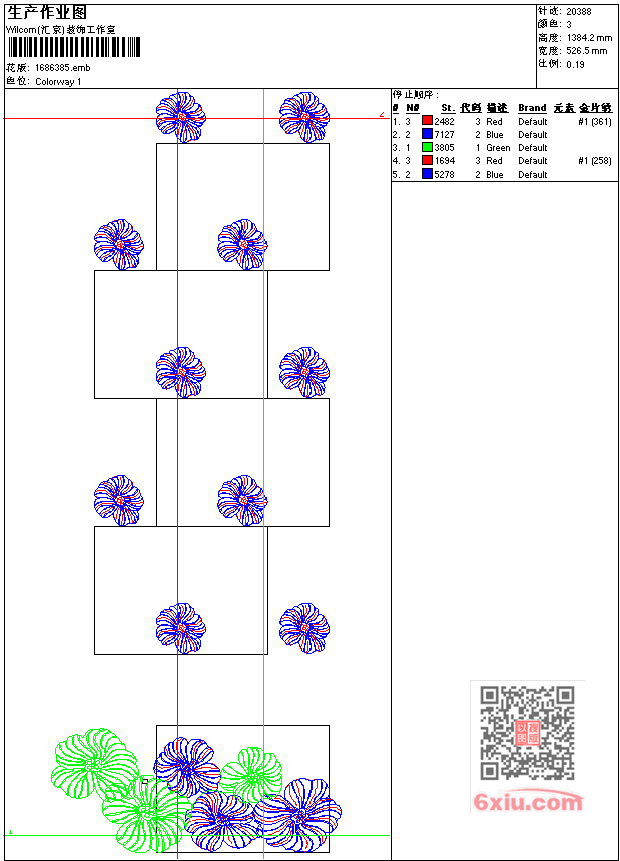 - emb花版参数: 大小:109.50 KB / 尺寸:527*1384[毫米] / 针数:20388针 / 线色:3 / 格式:emb / 版本:7