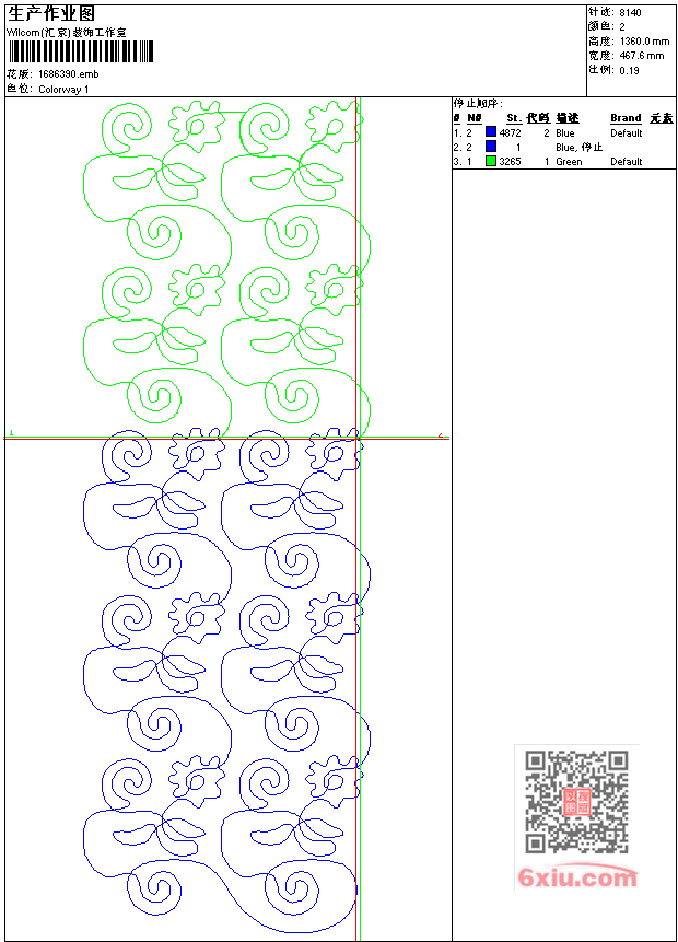 - emb花版参数: 大小:40.50 KB / 尺寸:468*1360[毫米] / 针数:8140针 / 线色:2 / 格式:emb / 版本:7