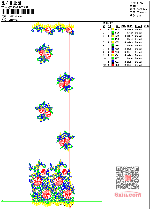 - emb花版参数: 大小:233.50 KB / 尺寸:358*1421[毫米] / 针数:51388针 / 线色:4 / 格式:emb / 版本:7
