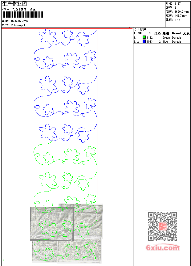 - emb花版参数: 大小:347.50 KB / 尺寸:450*1650[毫米] / 针数:6137针 / 线色:2 / 格式:emb / 版本:7