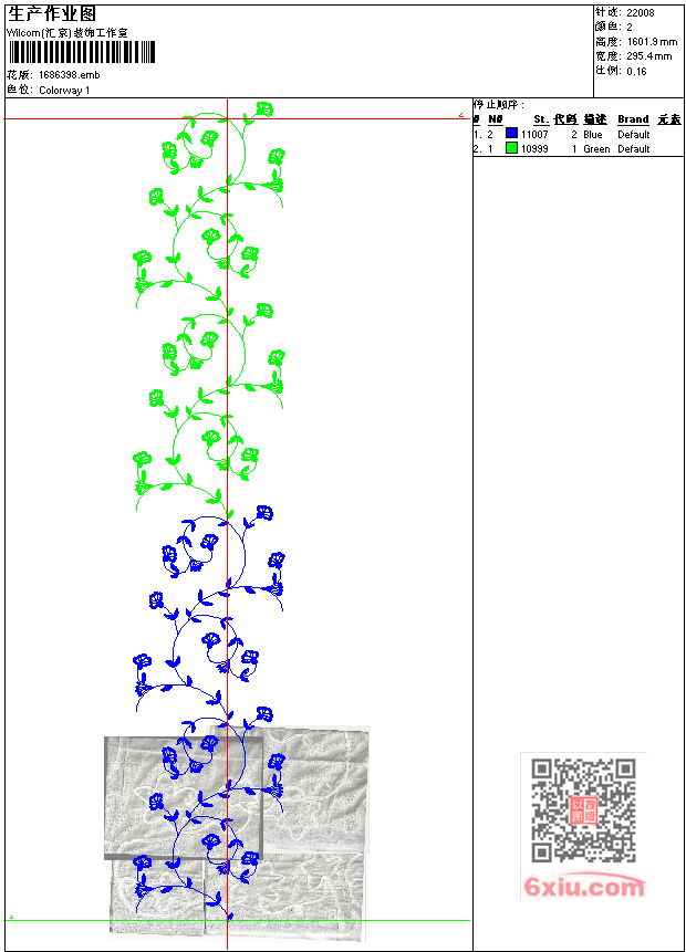 - emb花版参数: 大小:444.00 KB / 尺寸:295*1602[毫米] / 针数:22008针 / 线色:2 / 格式:emb / 版本:7