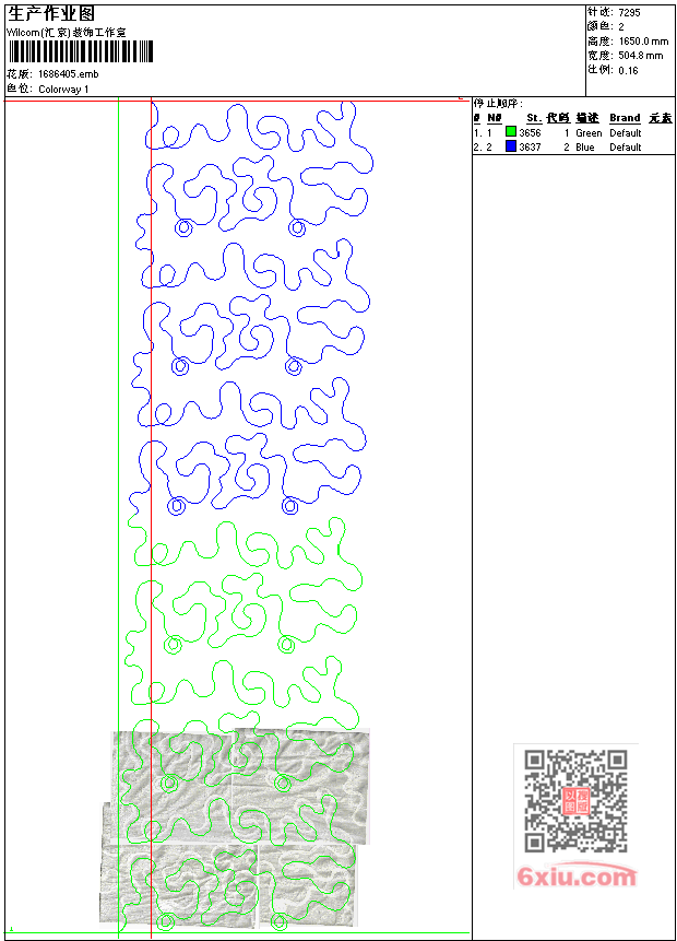 - emb花版参数: 大小:318.50 KB / 尺寸:505*1650[毫米] / 针数:7295针 / 线色:2 / 格式:emb / 版本:7