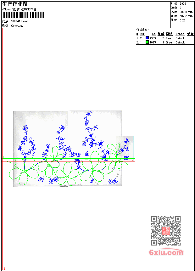 - emb花版参数: 大小:264.50 KB / 尺寸:497*291[毫米] / 针数:5936针 / 线色:2 / 格式:emb / 版本:7