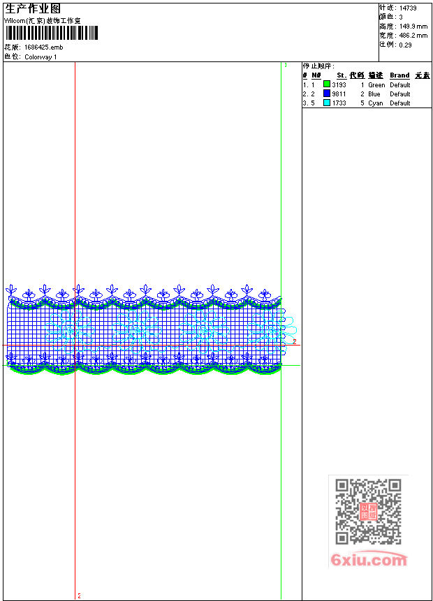 - emb花版参数: 大小:49.50 KB / 尺寸:486*150[毫米] / 针数:14739针 / 线色:3 / 格式:emb / 版本:7