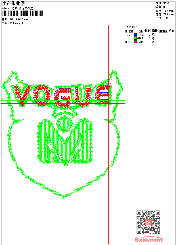 vogue emb花版参数: 大小:55.50 KB / 尺寸:73*76[毫米] / 针数:5033针 / 线色:3 / 格式:emb / 版本:9 版带文件需绣花软件方可打开,可配色打印导出各种格式或直接上机绣。如无绣花软件可下载1:1模拟效果图。 PNG图片信息:大小:0.1(MB) /图宽*高:275x290(像素) emb下载 1:1图下载 关闭 相关花版: 浮雕效果 心形小花排列 单针绿叶 aoueal something 亮片 X形长条边 big wasp 山寨李宁lining V领多针法 大红花 字母天鹅恋人security 裙边特别针法 似花非花抽象 亮片 珠片领 多次针抽象 多针法领中东 字母 理发 裤脚花 裙边链条花 领口叶花 臂章蜜蜂 gig wasp 贴布熊 领大花插针牡丹唐装古典 单针大花牡丹 抽象单针 V领抽象 插针牡丹唐装古典 匹绣 窗帘 匹绣
