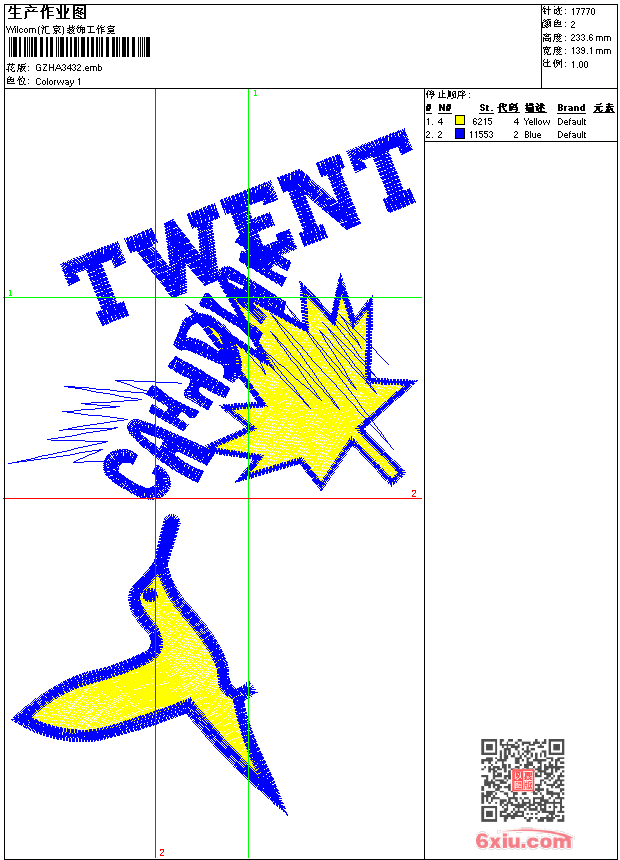 twent 飞鸟 emb花版参数: 大小:78.50 KB / 尺寸:139*234[毫米] / 针数:17770针 / 线色:2 / 格式:emb / 版本:9 版带文件需绣花软件方可打开,可配色打印导出各种格式或直接上机绣。如无绣花软件可下载1:1模拟效果图。 PNG图片信息:大小:0.3(MB) /图宽*高:527x884(像素) emb下载 1:1图下载 关闭 相关花版: 糖果从天降 仿网布平绣网格 单针叶花 vogue 浮雕效果 心形小花排列 单针绿叶 aoueal something 亮片 X形长条边 big wasp 山寨李宁lining V领多针法 大红花 字母天鹅恋人security 裙边特别针法 似花非花抽象 亮片 珠片领 多次针抽象 多针法领中东 字母 理发 裤脚花 裙边链条花 领口叶花 臂章蜜蜂 gig wasp 贴布熊 领大花插针牡丹唐装古典 单针大花牡丹 抽象单针 V领抽象