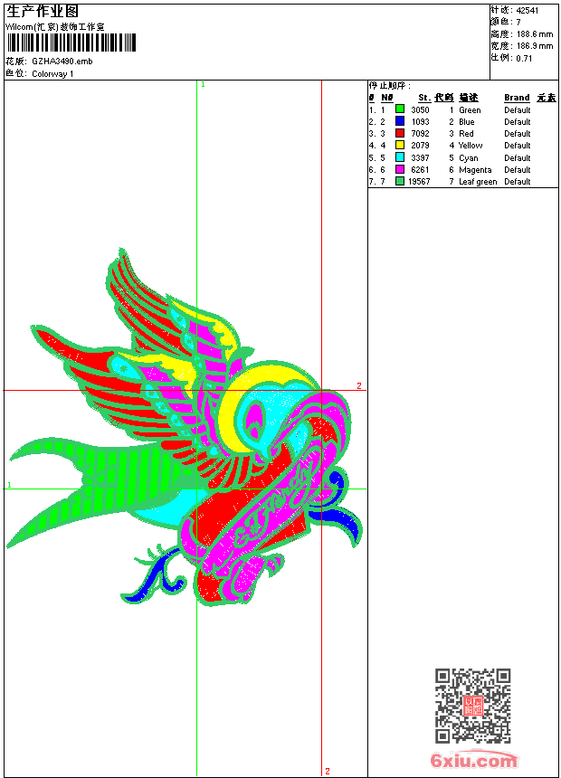 鸟翅膀抽象 emb花版参数: 大小:177.00 KB / 尺寸:187*189[毫米] / 针数:42541针 / 线色:7 / 格式:emb / 版本:9 版带文件需绣花软件方可打开,可配色打印导出各种格式或直接上机绣。如无绣花软件可下载1:1模拟效果图。 PNG图片信息:大小:0.6(MB) /图宽*高:707x714(像素) emb下载 1:1图下载 关闭 相关花版: 凤凰尾巴花衣 美国星条旗 V领长抽象 小象裤袋 三角针花枝 pc platnum 抽象帘状花 romante U领花 经典花多针法 浪花状抽象 仿立体绣字母 hpdf 加非猫 for you 多次单针抽象 花集 字母 crew 四角星包针花 插针转角花 V领抽象 baby phat we dont kick roun 简单花 人脸小鸟move 亮片 小鸟腰果花 复杂领中东 结小果实的花丛 U领花 包针仿水溶 激光烧花