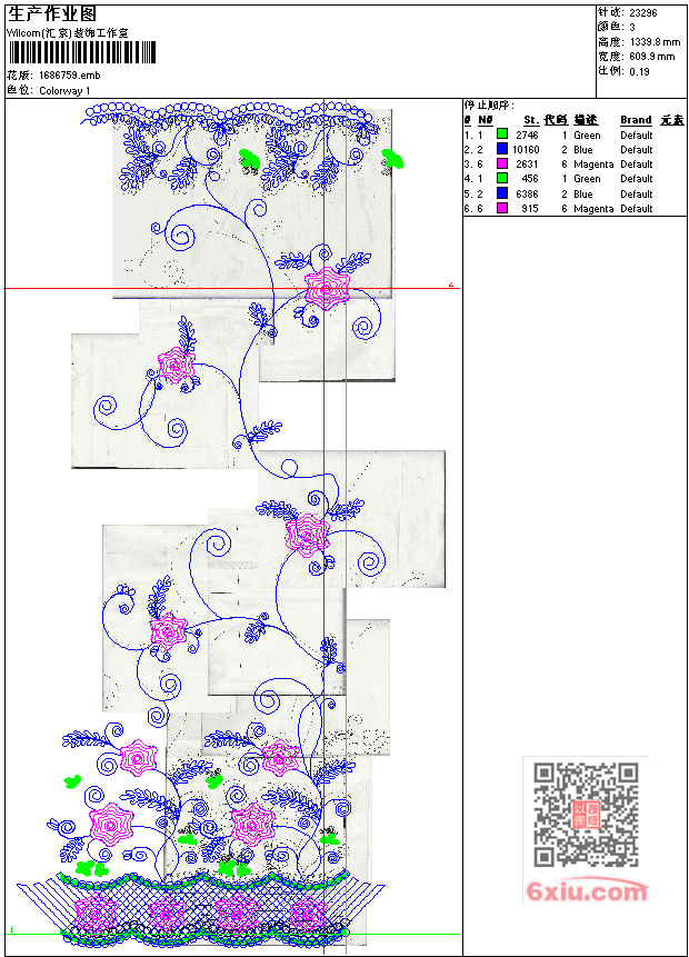 - emb花版参数: 大小:4.89 MB / 尺寸:610*1340[毫米] / 针数:23296针 / 线色:3 / 格式:emb / 版本:7