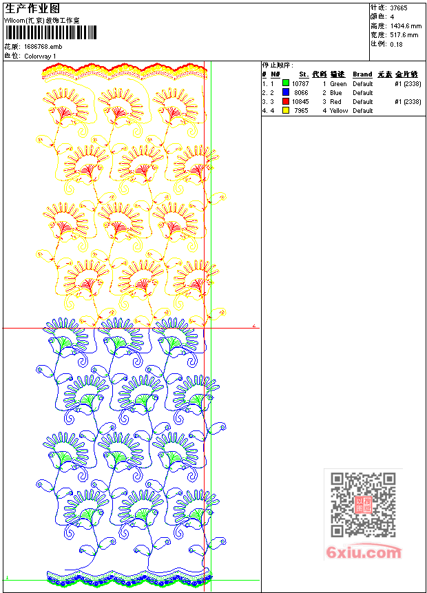 - emb花版参数: 大小:141.50 KB / 尺寸:518*1435[毫米] / 针数:37665针 / 线色:4 / 格式:emb / 版本:7
