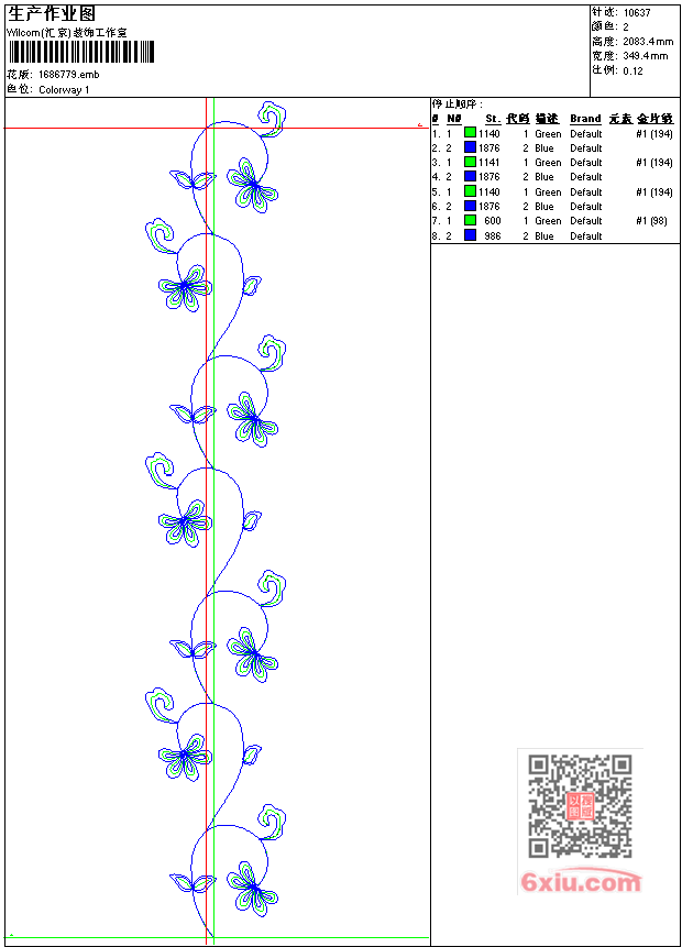 - emb花版参数: 大小:50.00 KB / 尺寸:349*2083[毫米] / 针数:10637针 / 线色:2 / 格式:emb / 版本:7