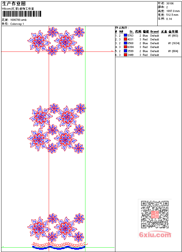 - emb花版参数: 大小:193.50 KB / 尺寸:512*1897[毫米] / 针数:30106针 / 线色:2 / 格式:emb / 版本:7
