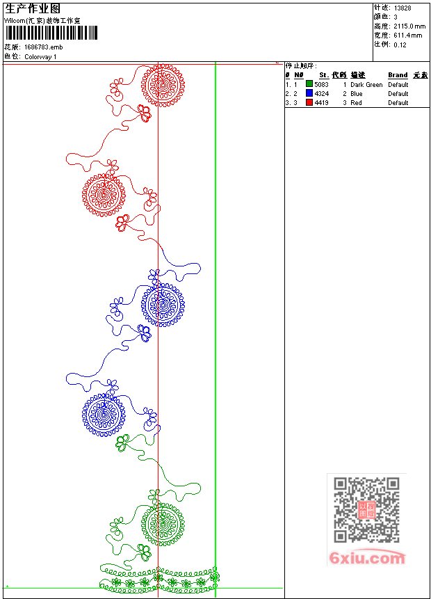 - emb花版参数: 大小:77.50 KB / 尺寸:611*2115[毫米] / 针数:13828针 / 线色:3 / 格式:emb / 版本:7
