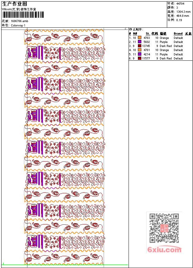 - emb花版参数: 大小:92.00 KB / 尺寸:465*1364[毫米] / 针数:44704针 / 线色:3 / 格式:emb / 版本:7