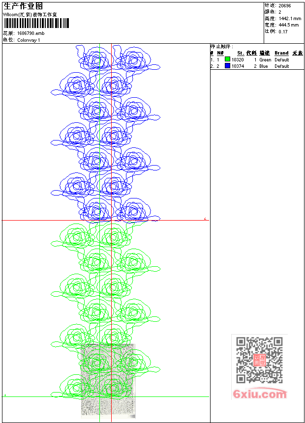 - emb花版参数: 大小:1.57 MB / 尺寸:445*1442[毫米] / 针数:20696针 / 线色:2 / 格式:emb / 版本:7