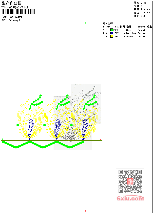 - emb花版参数: 大小:493.50 KB / 尺寸:531*298[毫米] / 针数:7165针 / 线色:3 / 格式:emb / 版本:7
