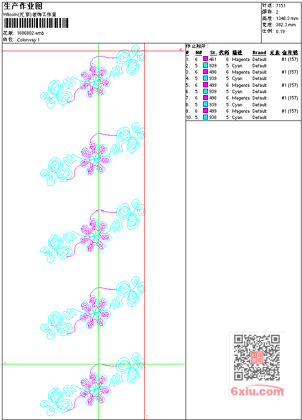 - emb花版参数: 大小:47.00 KB / 尺寸:382*1348[毫米] / 针数:7151针 / 线色:2 / 格式:emb / 版本:7