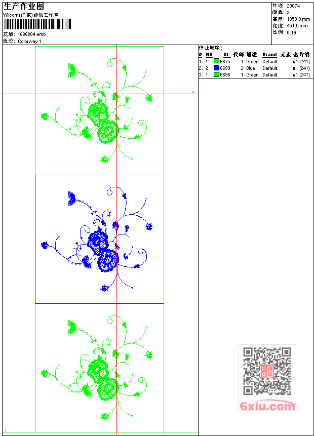 - emb花版参数: 大小:142.00 KB / 尺寸:451*1360[毫米] / 针数:20074针 / 线色:2 / 格式:emb / 版本:7