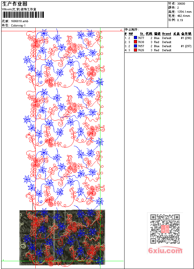 - emb花版参数: 大小:2.45 MB / 尺寸:462*1354[毫米] / 针数:30600针 / 线色:2 / 格式:emb / 版本:7